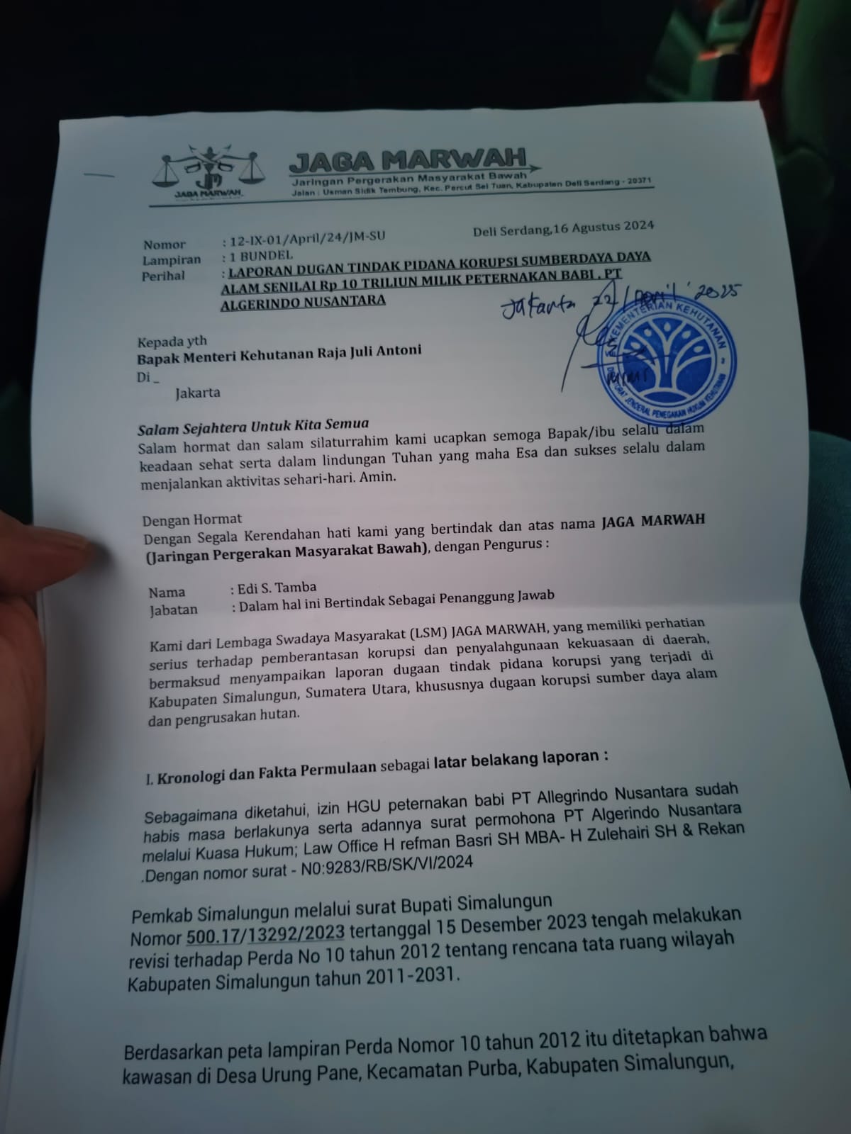 Sebagaimana diketahui surat permohonan koreksi yang dilayangkan PT Allegrindo Nusantara melalui kuasa hukumnya berkaitan dengan surat mereka terdahulu nomor 8992/RB/SK/I/2024 tanggal 04 Januari 2024 terkait pengurusan perpanjangan Hak Guna Usaha (HGU) nomor 80/Simalungun tanggal 25 September 1995 atas nama PT Allegrindo Nusantara.