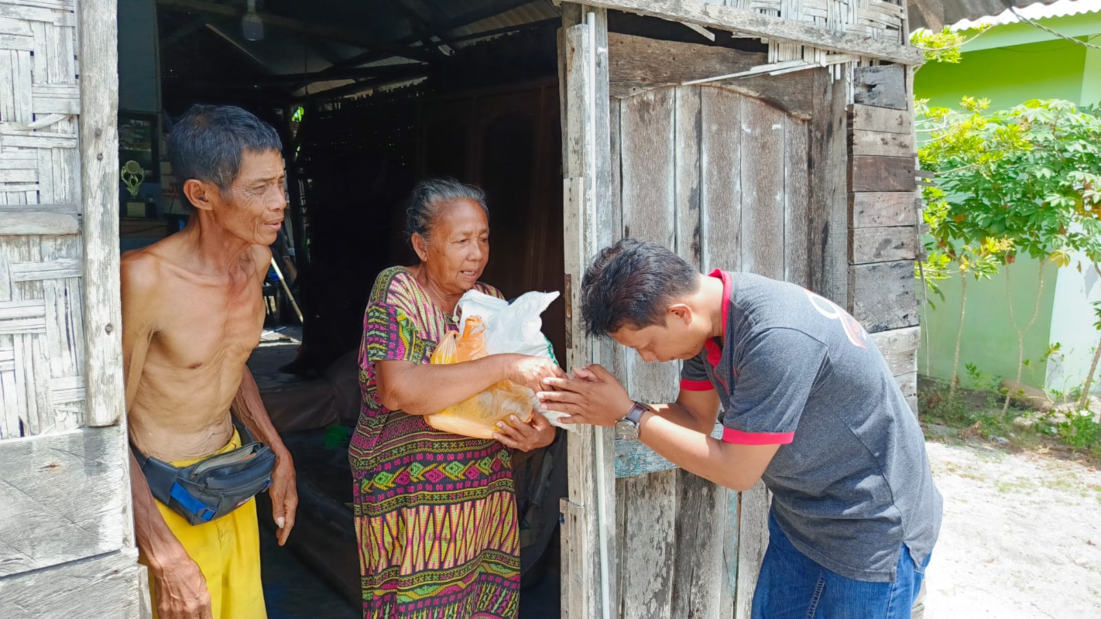 Kedatangan Zuhari ini sebut Poniyah, memang tepat sekali waktunya, saya sudah tanya ke suami kemarin, gimana ini beras sudah mau habis, dia (suami) malah terlihat kebingungan. Bersyukurlah hari ini Allah memberikan pertolongan melalui Zuhari datang ke rumah jelek ini membawa bantuan Beras,Gula Pasir dan Minyak Goreng. Terima kasih banyak. Ungkap Poniyah dan Ponirem dengan nada sedih sembari mengusap air mata yang keluar.