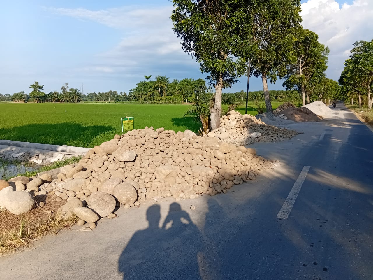 Sergai, harian24news.id- Masyarakat di dua desa di Kecamatan Sei Rampah, Kabupaten Serdang Bedagai, Sumatera Utara (Sumut), merasa resah dengan kondisi sebahagian badan jalan dipenuhi bahan material dari proyek kegiatan Optimasi Lahan Rawa Dinas Pertanian Sergai, yang diduga pengerjaannya asal mau cepat siap.
